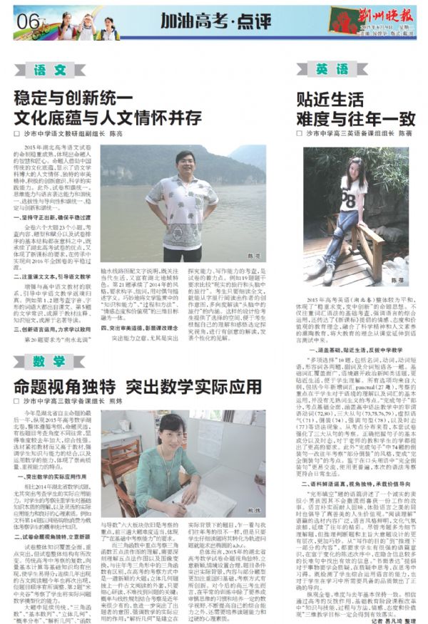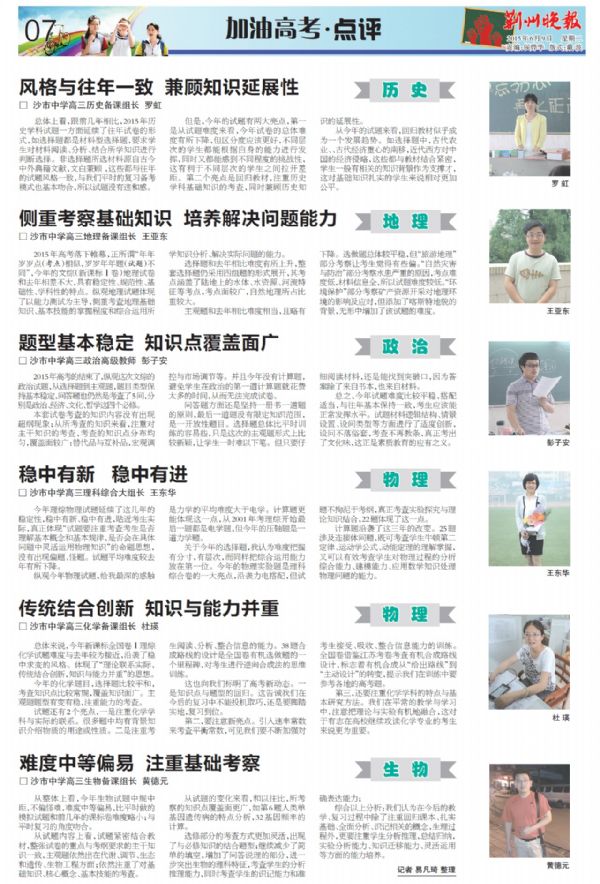 这也向我们标明了高考新动态。一是知识点与题型的回归。这告诫我们在今后的复习中不能投机取巧,还是要脚踏实地,复习到位。