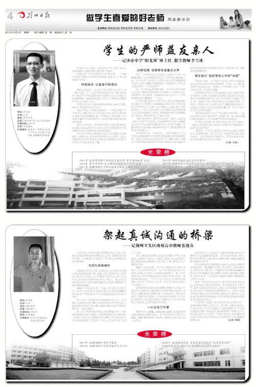 《荆州日报》9月2日第4版:学生的严师益友亲人(李雪冰)