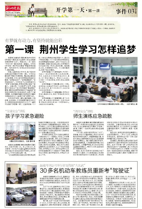 《荆州日报》9月2日第3版:第一课 荆州学生学习怎样追梦