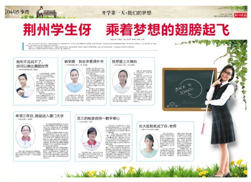 《荆州晚报》9月2日4-5版:荆州学生伢 乘着梦想的翅膀起飞