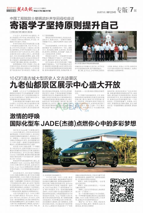 《楚天民报》9月22日第7版报道两院士校友回母校与学生座谈
