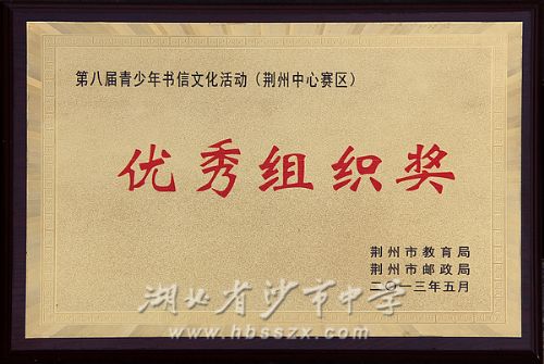 2013年05月获荆州市第八届青少年书信文化活动优秀组织奖