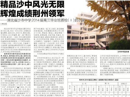 《楚天民报》12月12日第6版报道沙市中学高三调考取得的辉煌成绩
