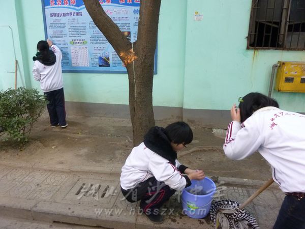 在绿化村社区打扫清洁的同学们,不惧寒冷,操起扫帚、拖把、水桶、抹布等工具,一丝不苟地开始了劳动。清扫花坛、街道,清洁瓷砖、宣传栏,清理墙面小广告栏等,分工明确,各司其职,得到了绿化村居民们的一致称赞。绿化村社区的邓主任说,这些孩子真的不错,不怕脏乱,做事认真,态度礼貌。同学们也对此次活动感受颇深,高二(12)班的吴同学说:“这次社会实践活动带给我的感受有很多,有辛苦也有快乐,是我高中以来做过的最有意义的事。”