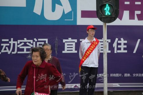 5月17日上午,我校高一(5)班学生在班主任孙青和校团委书记张珺的带领下,来到便河广场十字路口,开展交通文明劝导活动。同学们精神饱满,热情主动,积极劝导来往的行人遵守交通规则,文明出行,安全出行。活动进行了3个小时,直到天空下起了小雨才结束。此次活动,提高了同学们社会实践能力,增强了安全交通意识,舒缓了交通压力,受到了市民的欢迎。