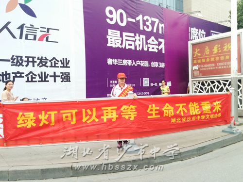 9月27日上午,天气晴朗,秋高气爽,高二(8)班全体同学参加了“劝导交通文明,迎接激情省运”的户外活动。本次活动地点在沙隆达广场北京路与便河西路、公园路交叉的三个十字路口。同学们谨记熊老师提出的“以劝为主,不要动手”的规则,尽管在活动开始时,同学们稍显羞涩,工作有些困难,但是在同学们的互相帮助下,活动取得了圆满成功。我们发现,有许多市民不是不愿等红灯,而是嫌其时间太长,最长的长达81秒钟。我们希望交通市政部门能够适当调节红灯时间,来方便广大市民的出行。