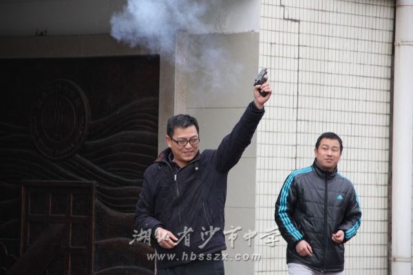 校长熊礼才为健身跑鸣枪