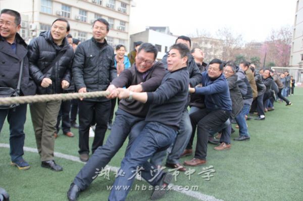 拔河比赛,拼了! 12月31日下午,沙市中学操场上充溢新年的快乐和运动的喜悦。为了迎接2015年的到来,丰富教师的课余生活,让教师积极投身到健康的户外活动中去,沙市中学举行了迎元旦教师健身跑和拔河比赛。