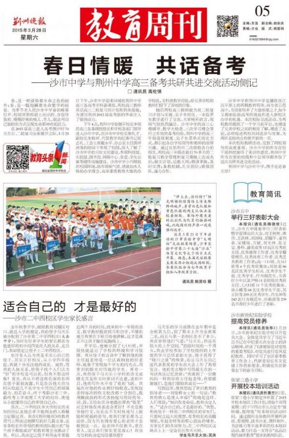 《荆州晚报》2015年3月28日报道我校与荆州中学共研高考备考工作