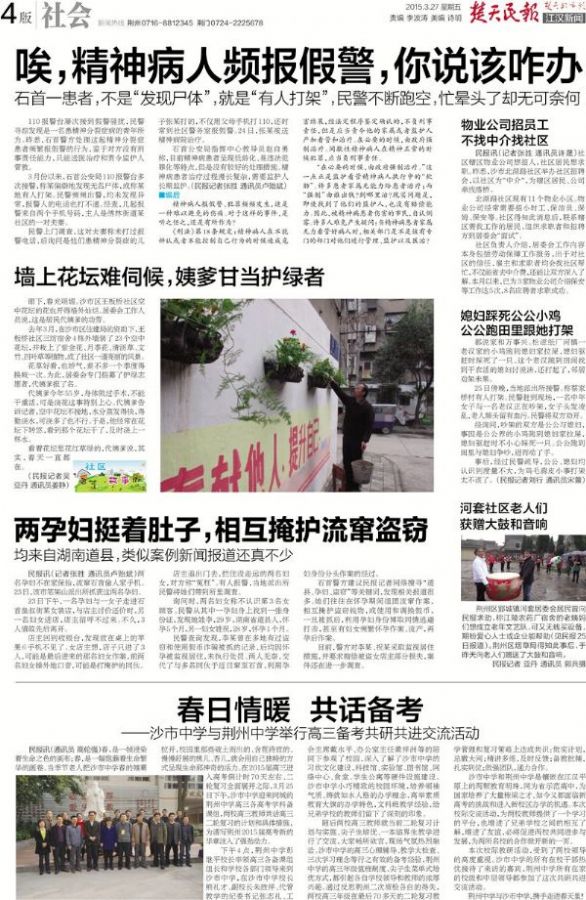 《楚天民报》2015年3月27日报道我校与荆州中学举行高考备考共研活动