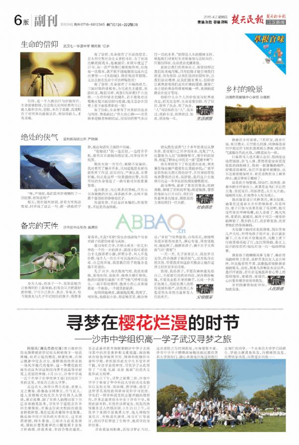 《楚天民报》2015年4月2日报道我校组织高一学生赴武汉高校寻梦