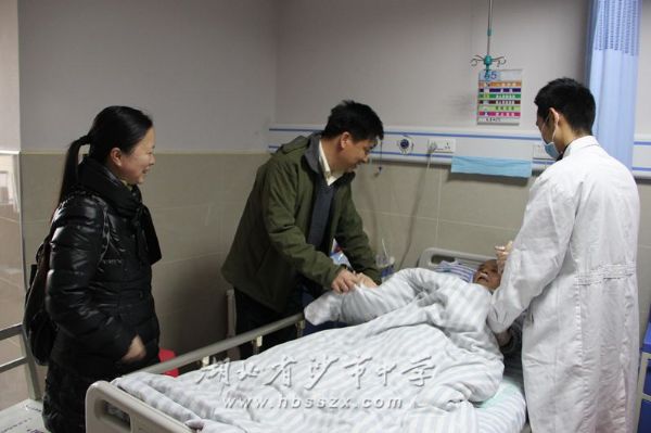 沙市中学工会主席戴永平、副主席刘培华看望高俊老师