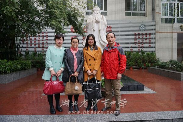 张心怡和母亲与朱胜祥副校长、全正华老师合影