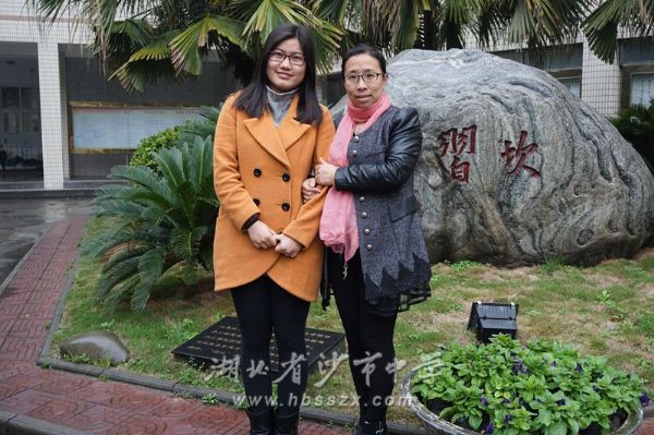 张心怡与原班主任全正华老师合影 4月6日,2011届校友张心怡回到母校沙市中学,与教过自己的老师和学校领导座谈,汇报自己的学习成果。