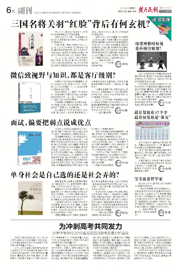 《楚天民报》2015年4月23日报道我校举行三校教学联合体四月高三联考质量分析会议
