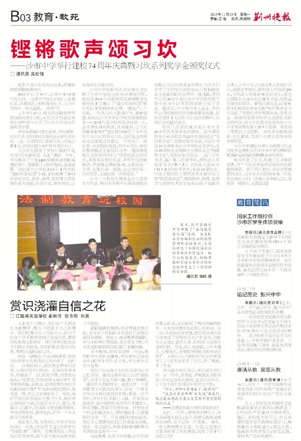 《荆州晚报》2015年11月23日报道我校校庆日活动