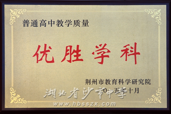 2015年10月多门学科获评荆州市普通高中教学质量优胜学科
