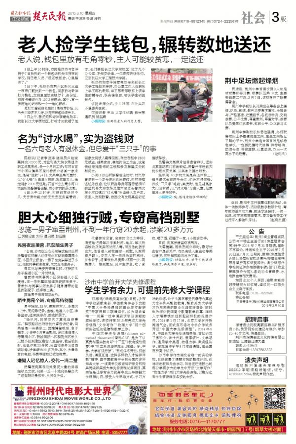 《楚天民报》2016年3月11日报道我校开设大学先修课程