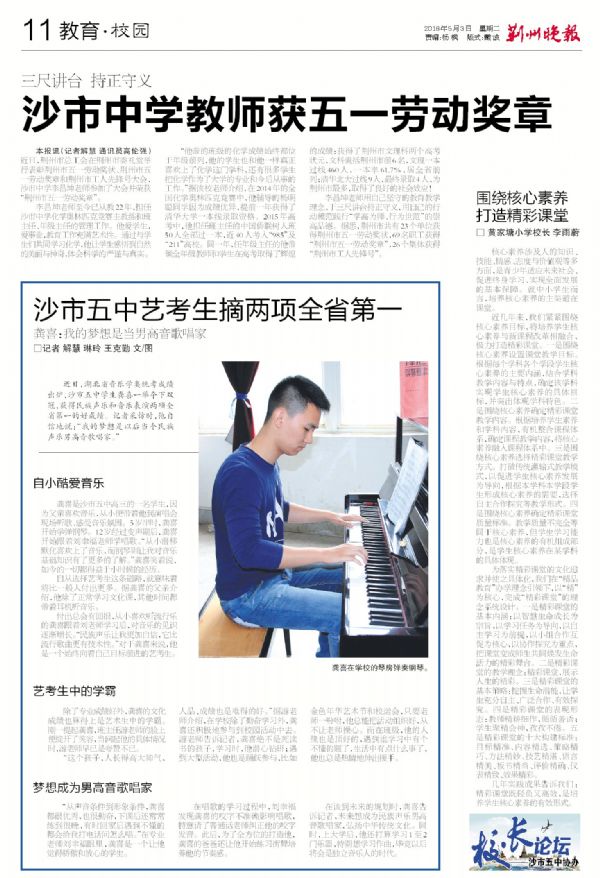《荆州晚报》2016年5月3日报道李昌坤老师获得五一奖