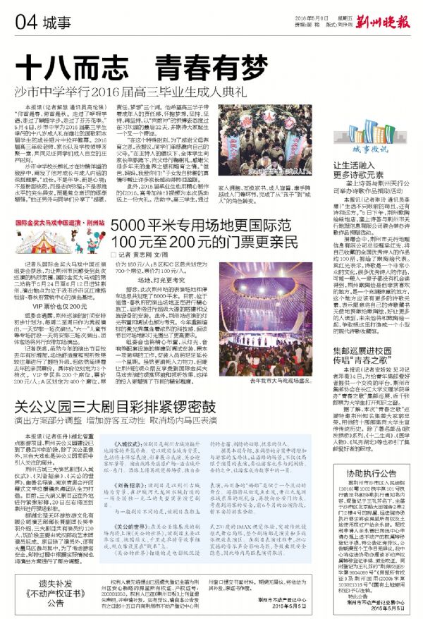 《荆州晚报》2016年5月6日报道我校高三学子成人仪式