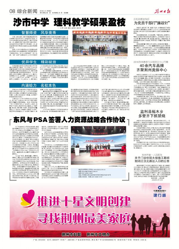 《荆州日报》2016年5月13日报道我校理科教学取得优异成绩