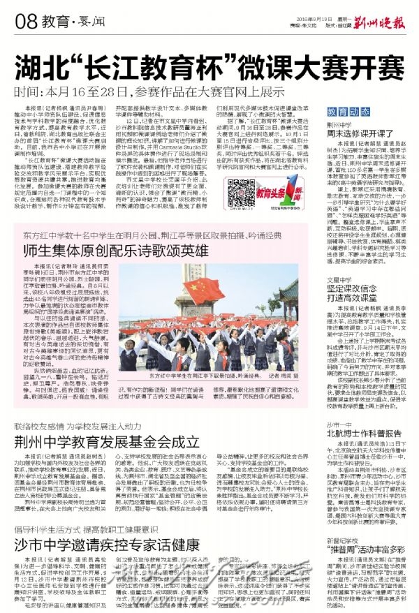 《荆州晚报》2016年9月19日报道我校邀请疾控专家进校话健康