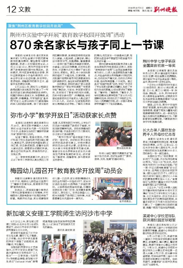 《荆州晚报》2016年10月8日报道新加坡义安理工学院师生访问我校