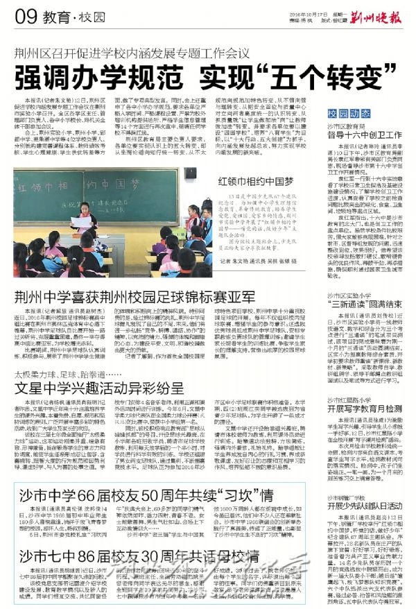 《荆州晚报》2016年10月17日报道我校66届初中毕业生50年后再聚首