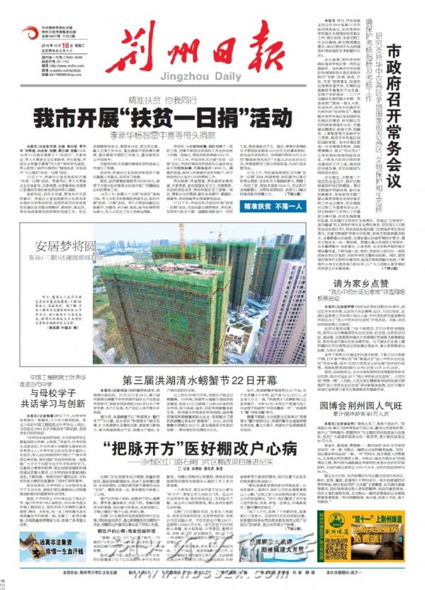 《荆州日报》2016年10月18日报道校友叶声华院士回母校与习坎学子畅谈学习与创新