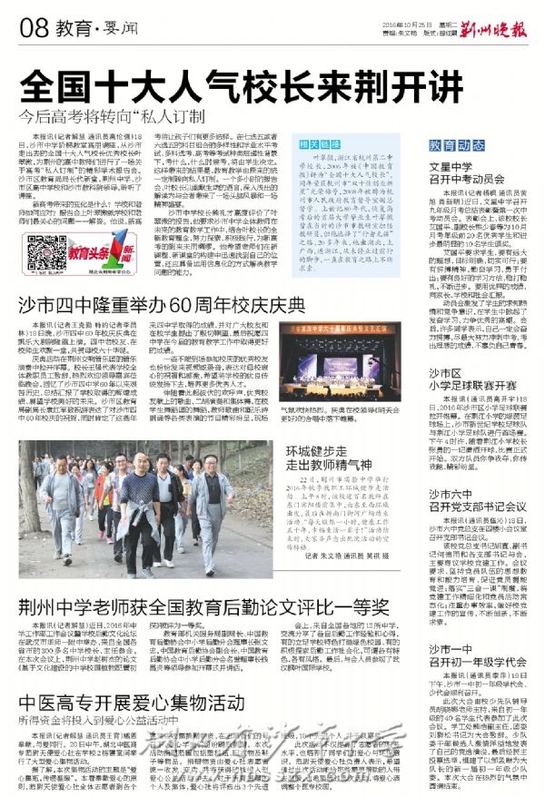《荆州晚报》2016年10月25日报道叶翠微校长在我校开讲新高考