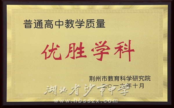2016年10月多门学科获评"荆州市普通高中教学质量优胜学科"