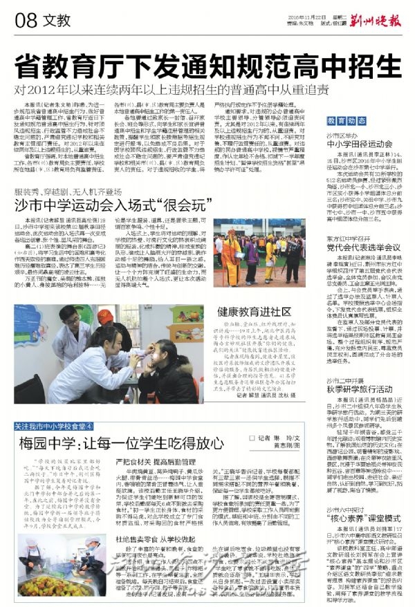 《荆州晚报》2016年11月22日报道我校运动会入场式