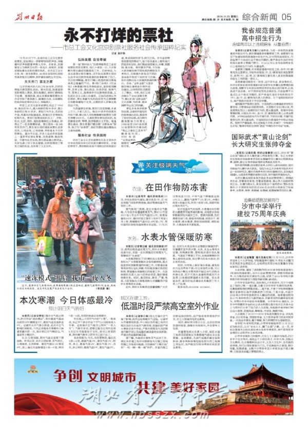 《荆州日报》2016年11月23日报道我校庆祝建校75周年