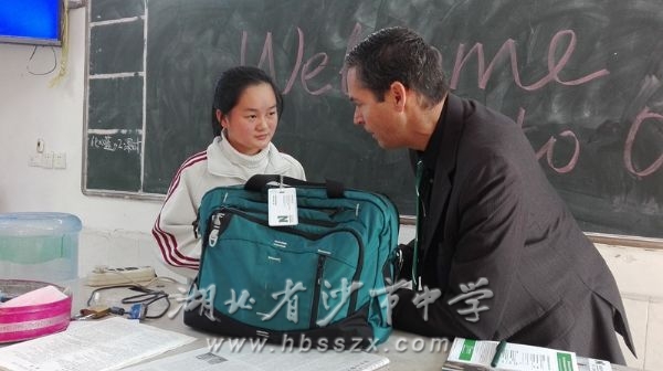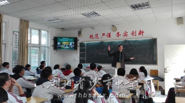 Phil Hull博士还深入课堂,走进教室,与沙市中学学生进行面对面的沟通和交流。高一(2)班全体学生热烈欢迎Phil Hull 博士到访,并在课堂上与博士进行了快乐互动;不少学生在下课后主动与博士交换自己对国际交流的看法,并表达了自己希望拓展国际视野,提高跨文化交际能力的意愿。Phil Hull博士鼓励沙市中学的所有同学,要积极投入到全球化的活动中去,不断发展和完善自己,并希望同学们到西北密苏里州立大学访问、交流、学习。