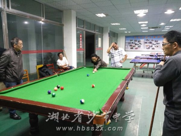 12月5日,沙市中学教职工台球(8球)比赛于在学校工会活动室举行,来自学校四个分工会的15余名选手参加了比赛。比赛由校工会主办,校教职工台球协会承办。