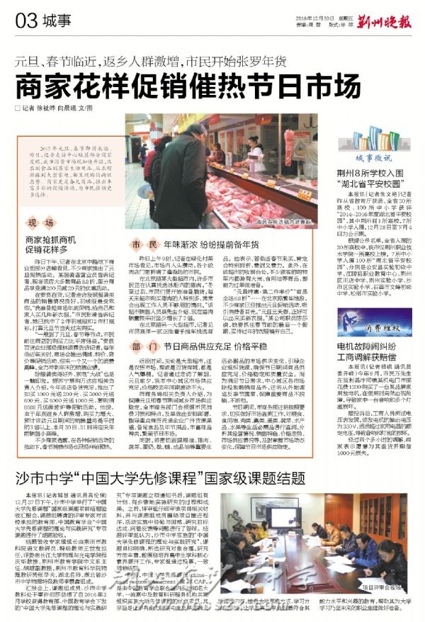 《荆州晚报》2016年12月30日报道我校"大学先修课程"国家级课题结题