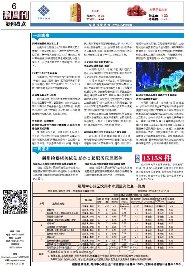 《荆周刊》2016年12月23日报道我校在网络征文大赛中获奖