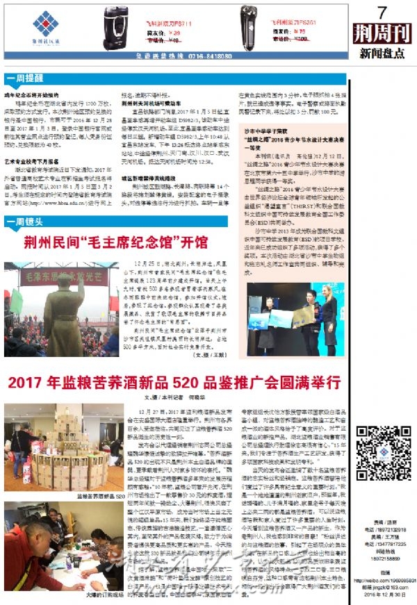 《荆周刊》2016年12月30日报道我校学子获得全国节水设计大赛一等奖