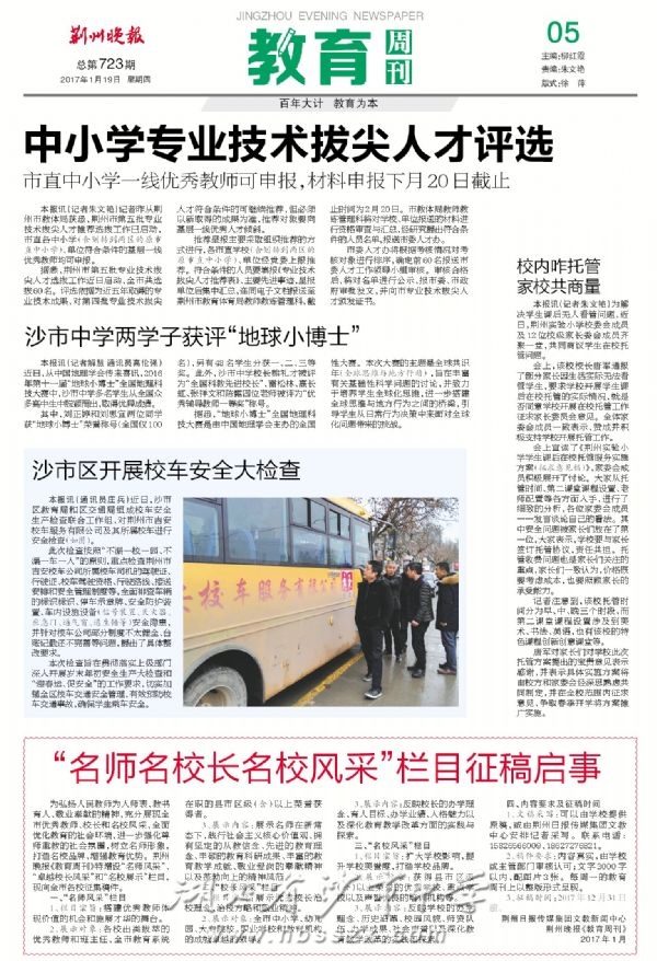 《荆州晚报》2017年1月19日报道我校两名学子获评"地球小博士"