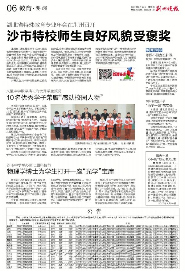 《荆州晚报》2017年1月19日报道我校举办科技讲座