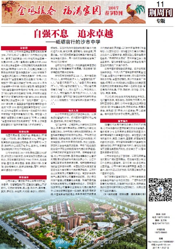 《荆周刊》2017年1月27日专版报道砥砺前行的沙市中学