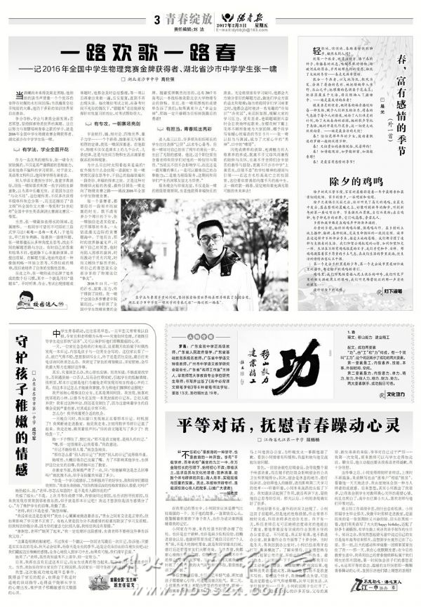 《德育报》2017年2月3日报道我校学生张一啸
