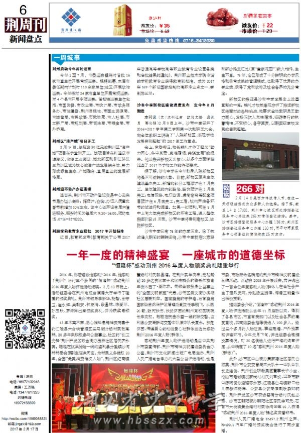 《荆周刊》2017年2月17日报道我校新校区建设进度
