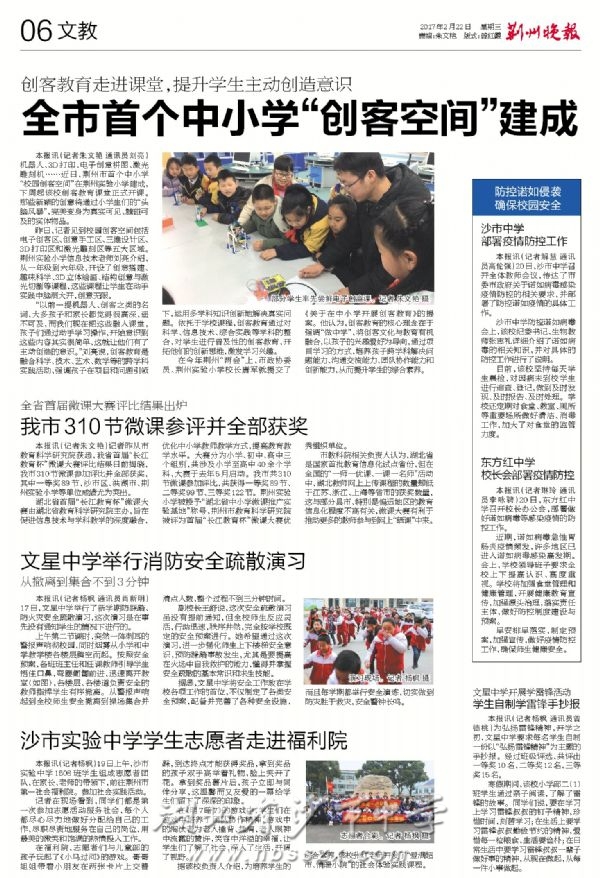 《荆州晚报》2017年2月22日报道我校部署疫情防控工作