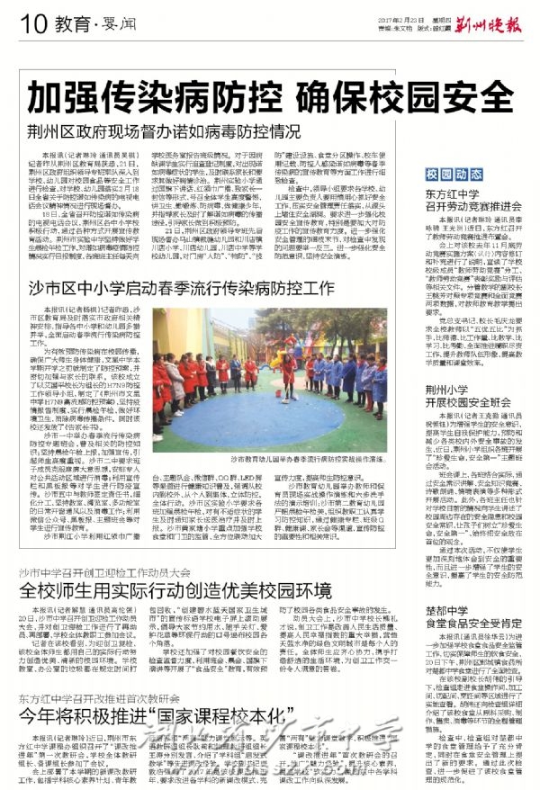 《荆州晚报》2017年2月23日报道我校迎接创卫复检