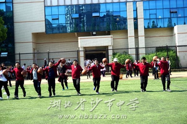 4月29日上午,沐浴着灿烂的春阳,享受着清爽的蓝天,在沙市中学第八届体育艺术节开幕之际,我校全体教师也迎来了由学校工会组织的以友谊、竞技、娱乐、锻炼为宗旨的教师趣味运动会。