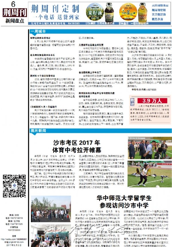 《荆周刊》2017年5月5日报道华师留学生访问我校