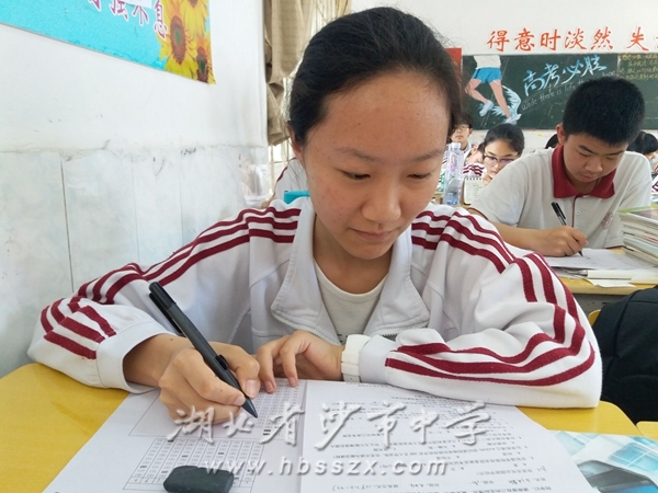 学生仔细阅读、认真填写(二) 12日上午最后一节课,高一、高二年级全体学生开展了“沙市中学A-LEVEL国际课程问卷调查”活动。本次活动由对外交流处组织,并得到了高一、高二年级组大力支持。