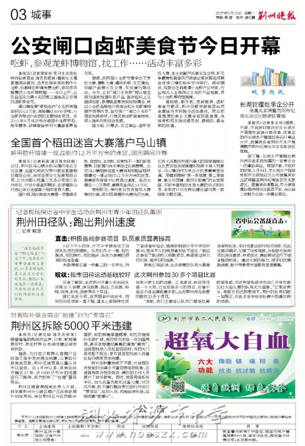 《荆州晚报》2017年5月15日报道以我校队员为主的荆州田径队备战省中学生运动会