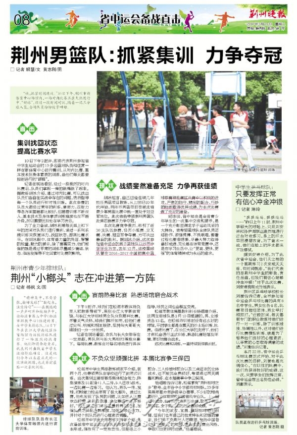 《荆州晚报》2017年5月16日报道以我校队员为主的荆州篮球队备战省中运会